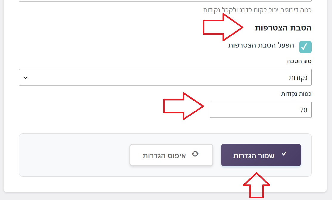 כנסו להגדרות התוסף, תחת לשונית "Points for Signup" (נקודות להרשמה). הגדירו סכום סמלי אבל מפתה. למשל: 50 נקודות.