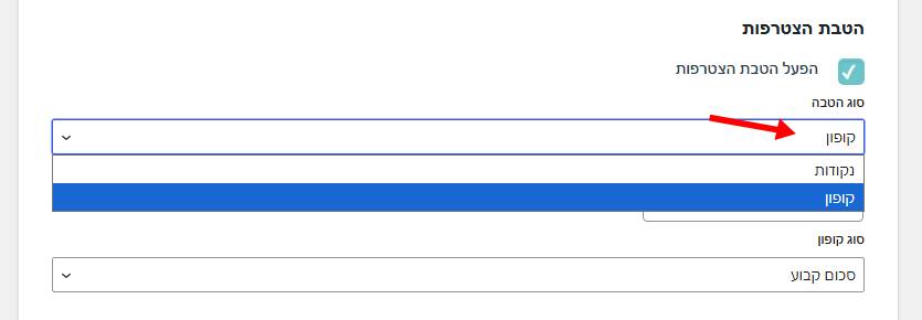 הגדרת הטבת הצטרפות למועדון (נקודות / קופון)