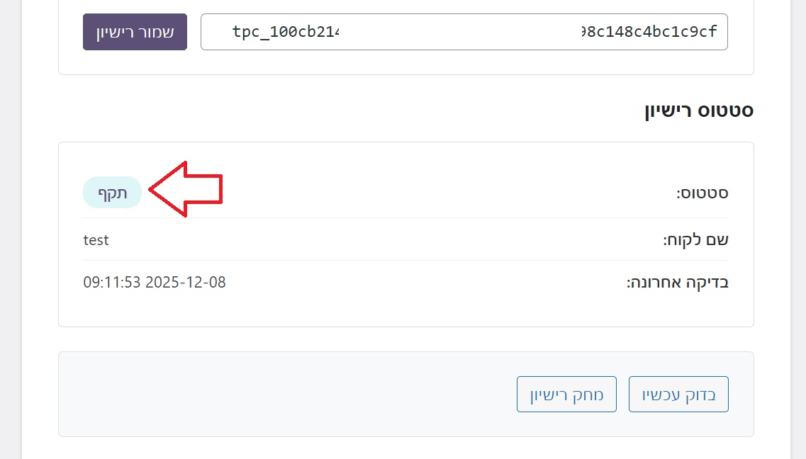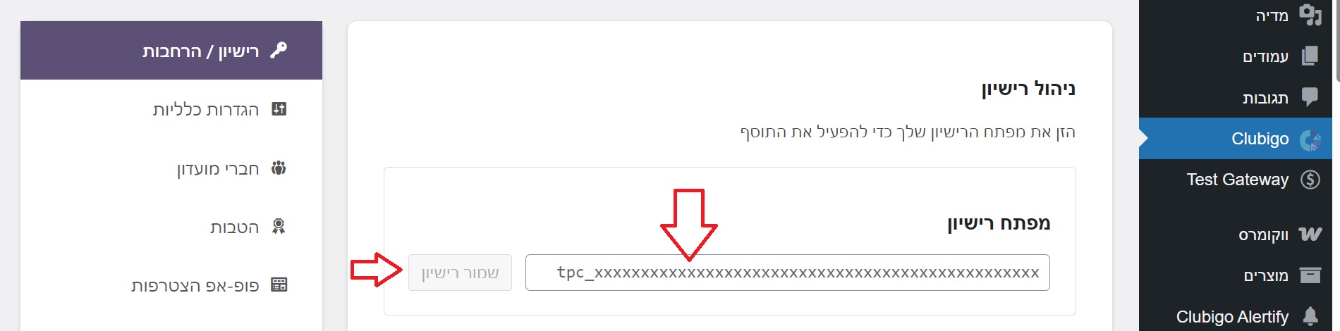 בכניסה הראשונה תידרש להזין את רישיון התוסף, שמתקבל ישירות מחברת קלאביגו.