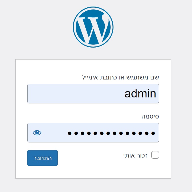 התחבר לאתר הוורדפרס שלך ועבור ללוח הבקרה.
